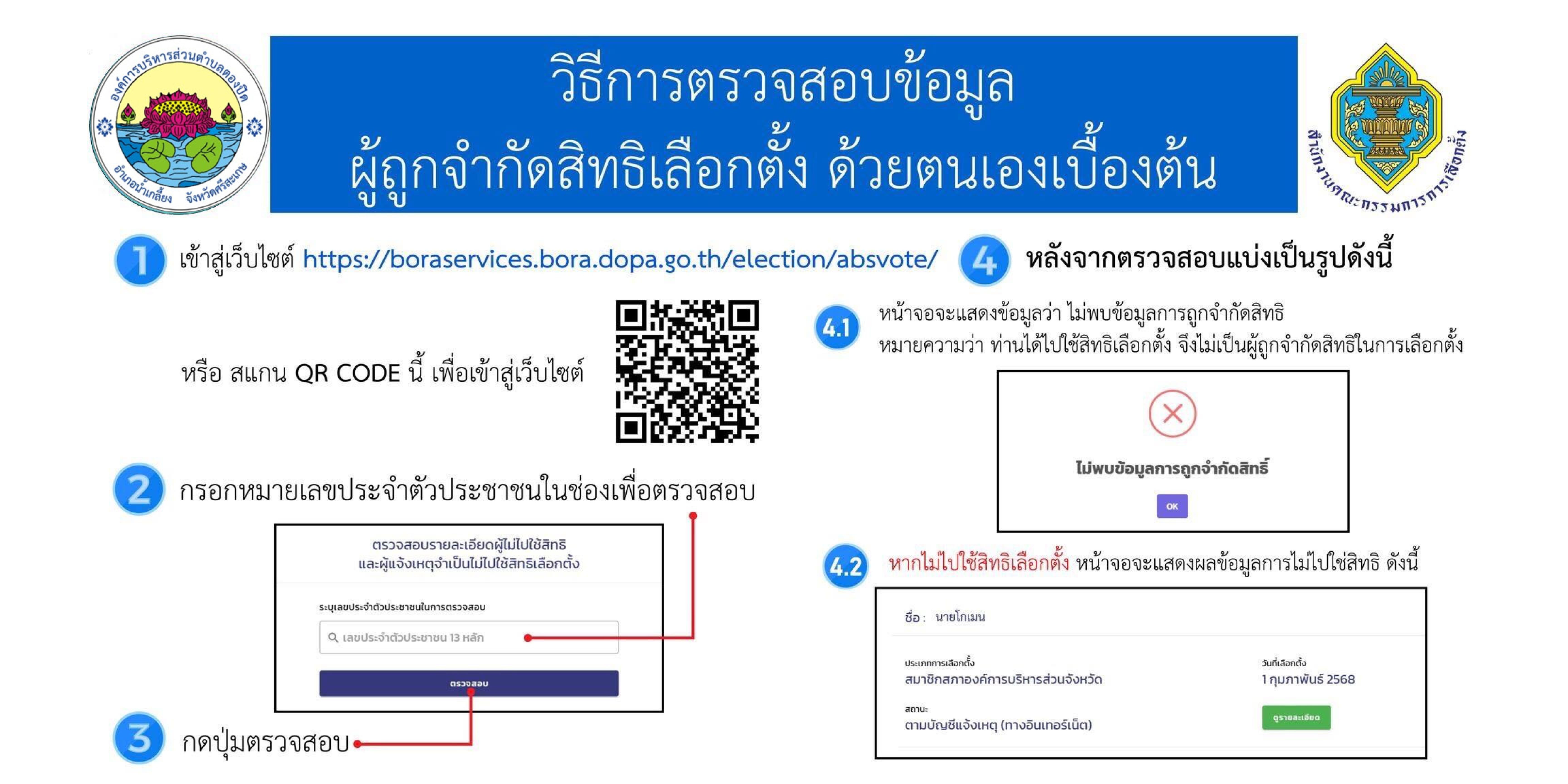 องค์การบริหารส่วนตำบลตองปิด ประชาสัมพันธ์ช่องทางวิธีการตรวจสอบข้อมูลผู้ถูกจำกัดสิทธิเลือกตั้งด้วยตนเองเบื้องต้น