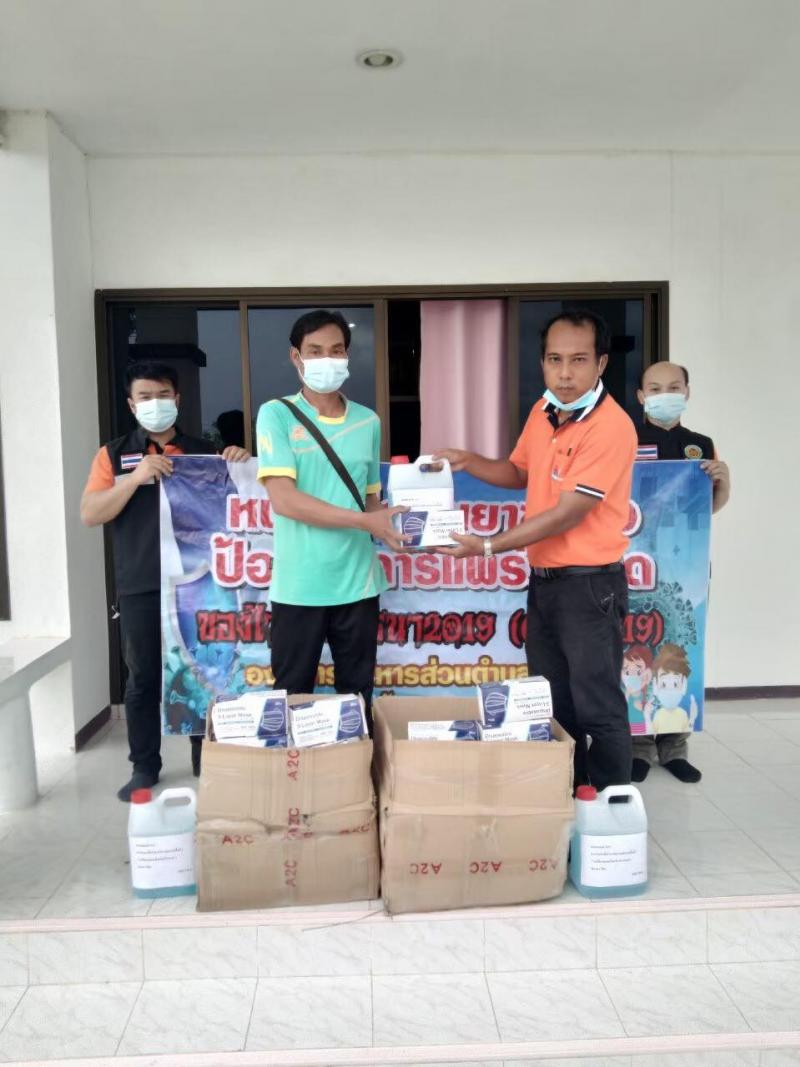 description ส่งมอบวัสดุการแพทย์ (แอลกอฮอล์ฆ่าเชื้อ,หน้ากากอนามัย) ให้กับผู้นำทั้ง14หมู่บ้าน person admin