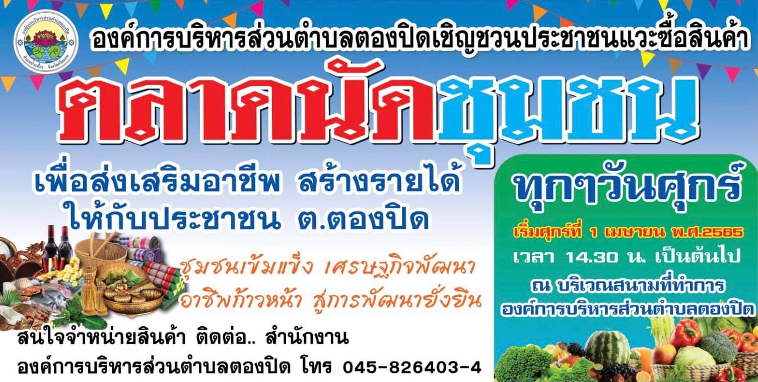 องค์การบริหารส่วนตำบลตองปิดเชิญชวนประชาชนแวะซื้อสินค้า "ตลาดนัดชุมชน" เพื่อส่งเสริมอาชีพ สร้างรายได้ ให้กับประชาชน