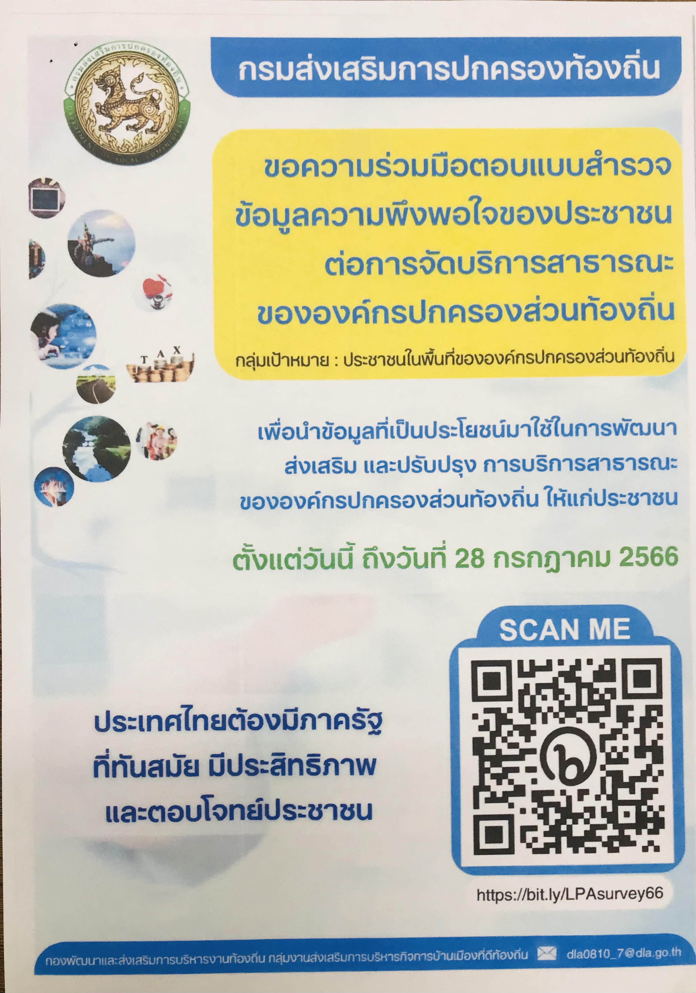 ขอความร่วมมือตอบแบบสำรวจข้อมูลความพึงพอใจของประชาชนต่อการจัดบริการสาธารณะขององค์กรปกครองส่วนท้องถิ่น